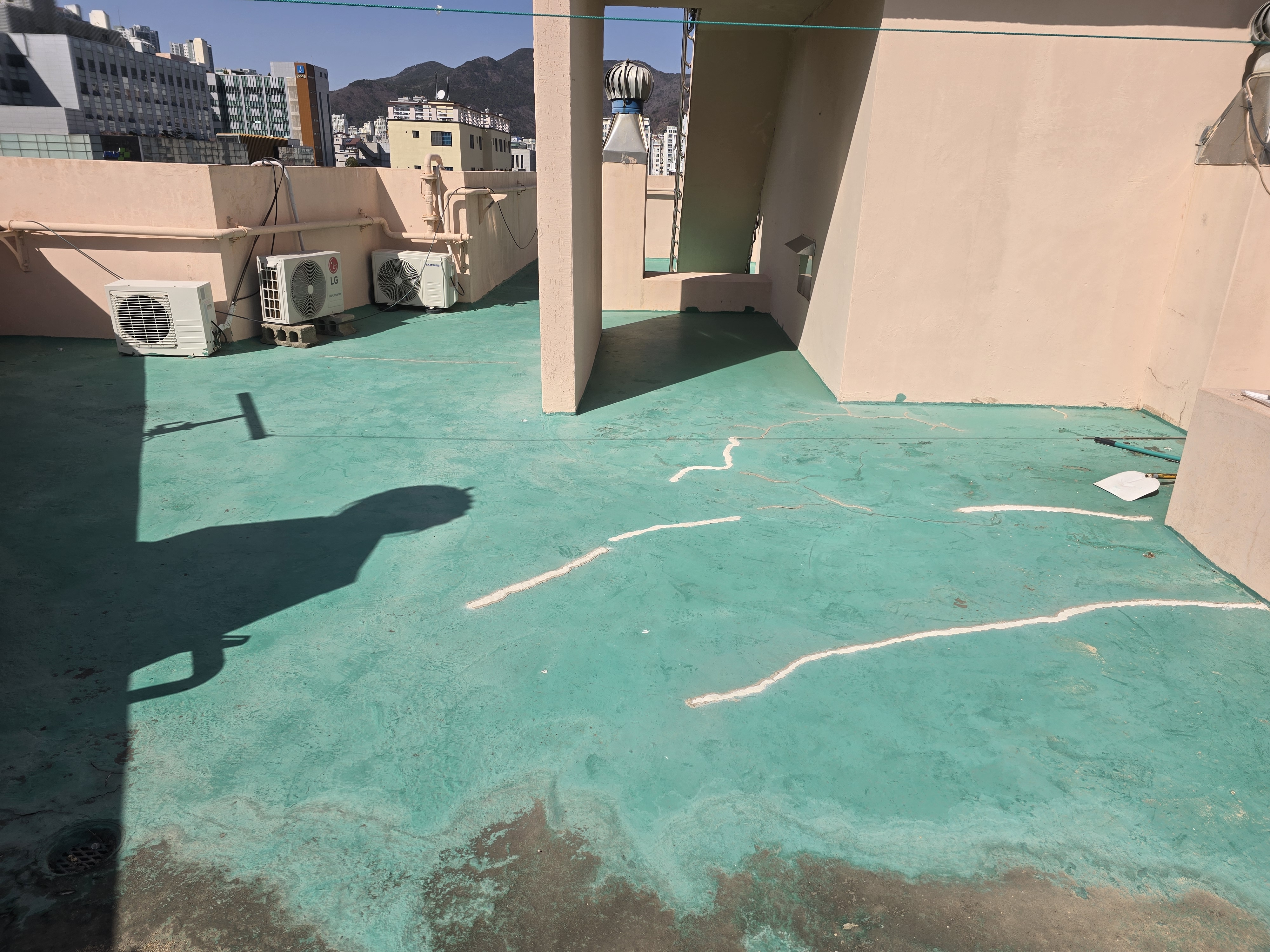 우레탄방수 하고 있습니다 노후된 옥상 방수는